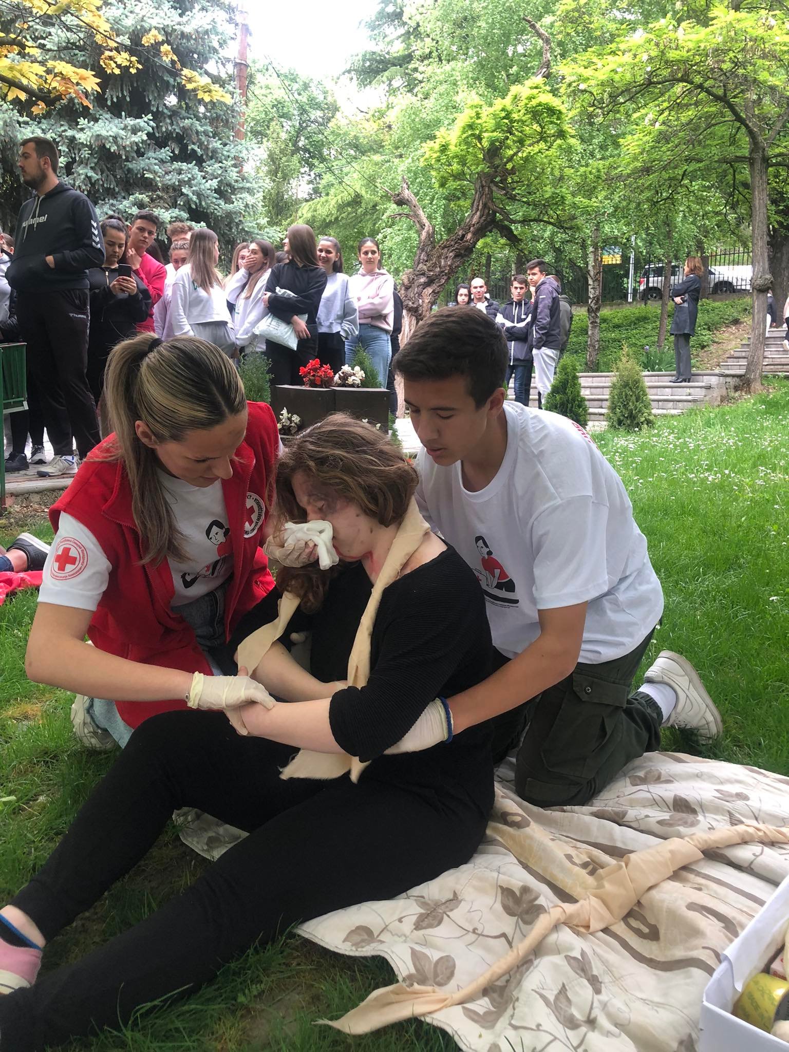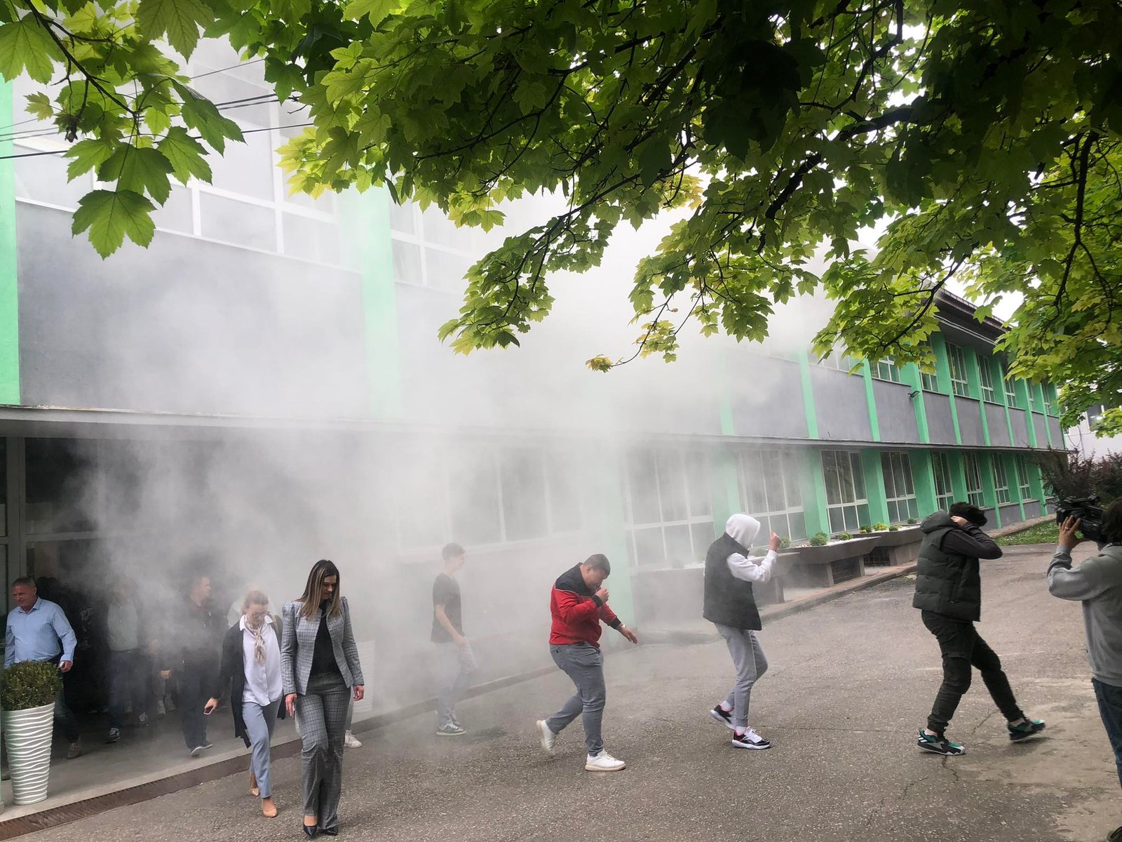 Сирената алармираше за пожарот. Учениците беа навреме евакуирани. Волонтери на Црвен Крст Кавадарци помагаа на повредени, а за кратко време пристигнаа екипите на против пожарната единица и на брза помош кои дејствуваа професионално.