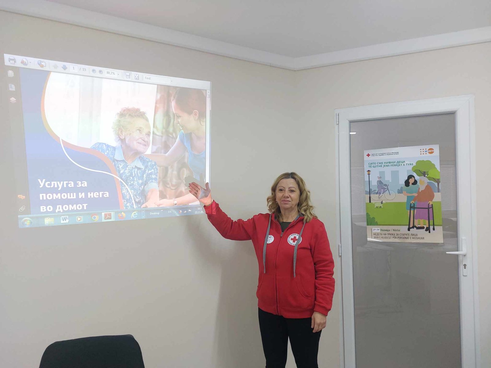 На ден 22.11.2023 година во просториите на Црвен крст Општинска Организација Кавадарци се организира информативна работилница со старите лица за нивно запознавање со правата од социјална и здравствена заштита со цел подобрување на нивниот квалитет на живеење и здраво стареење. На работилницата од страна на двајца социјални работници им беше презентирана презентација за правата од социјална и здравствена заштита, како и промоција на социјалните услуги за нега и помош на стари лица во домашни услови кои го работиме активно веќе 2 години.