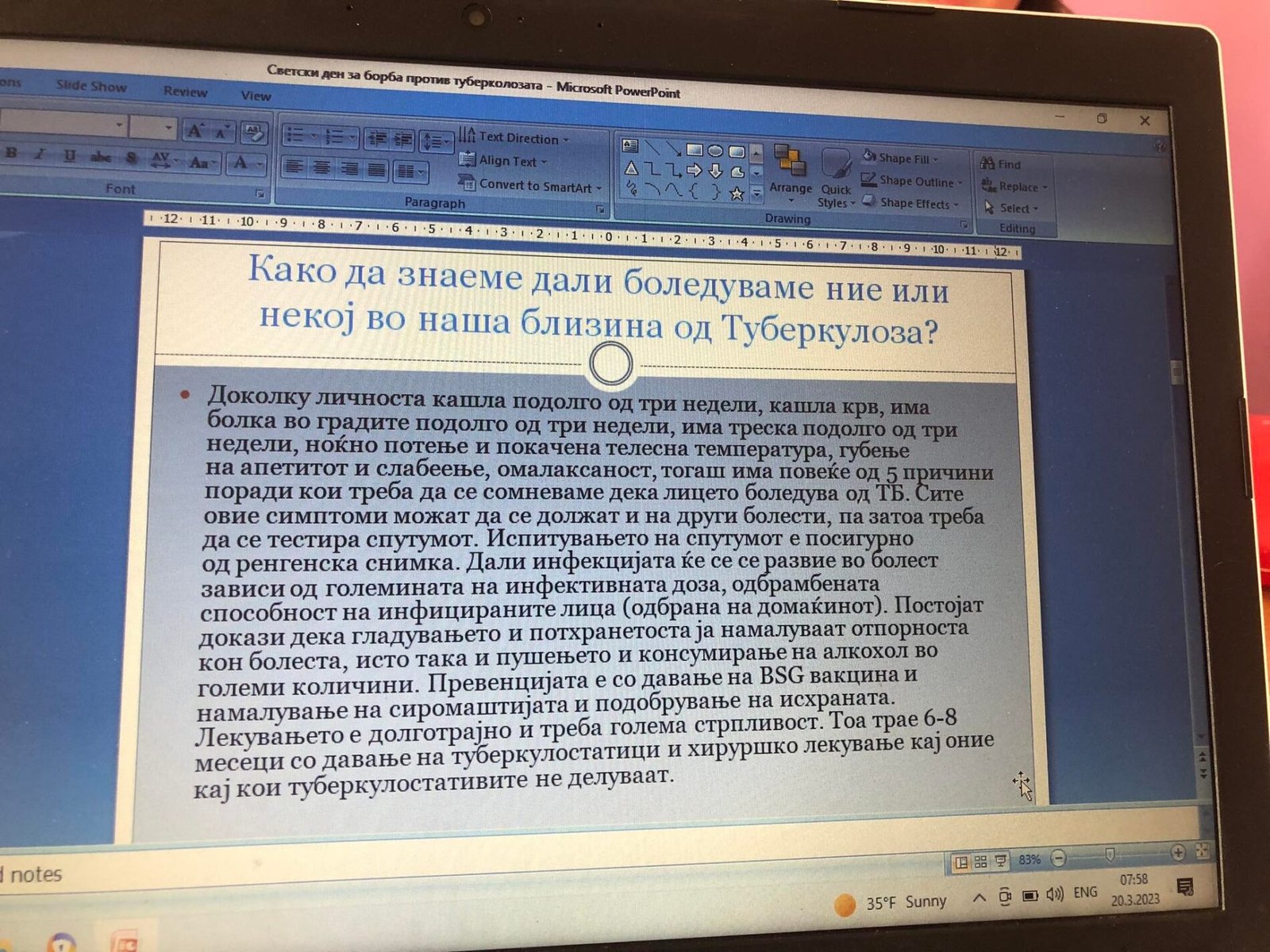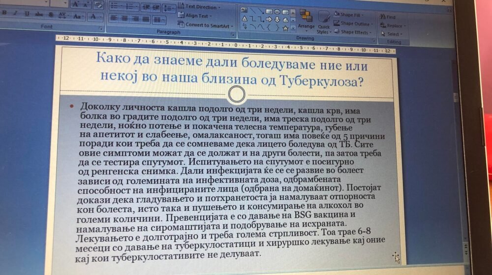 Преку овие презентации учениците од деветите одделениа беа информирани за: Причини, симптоми, дијагноза, последици и превенција од Туберкулозата.